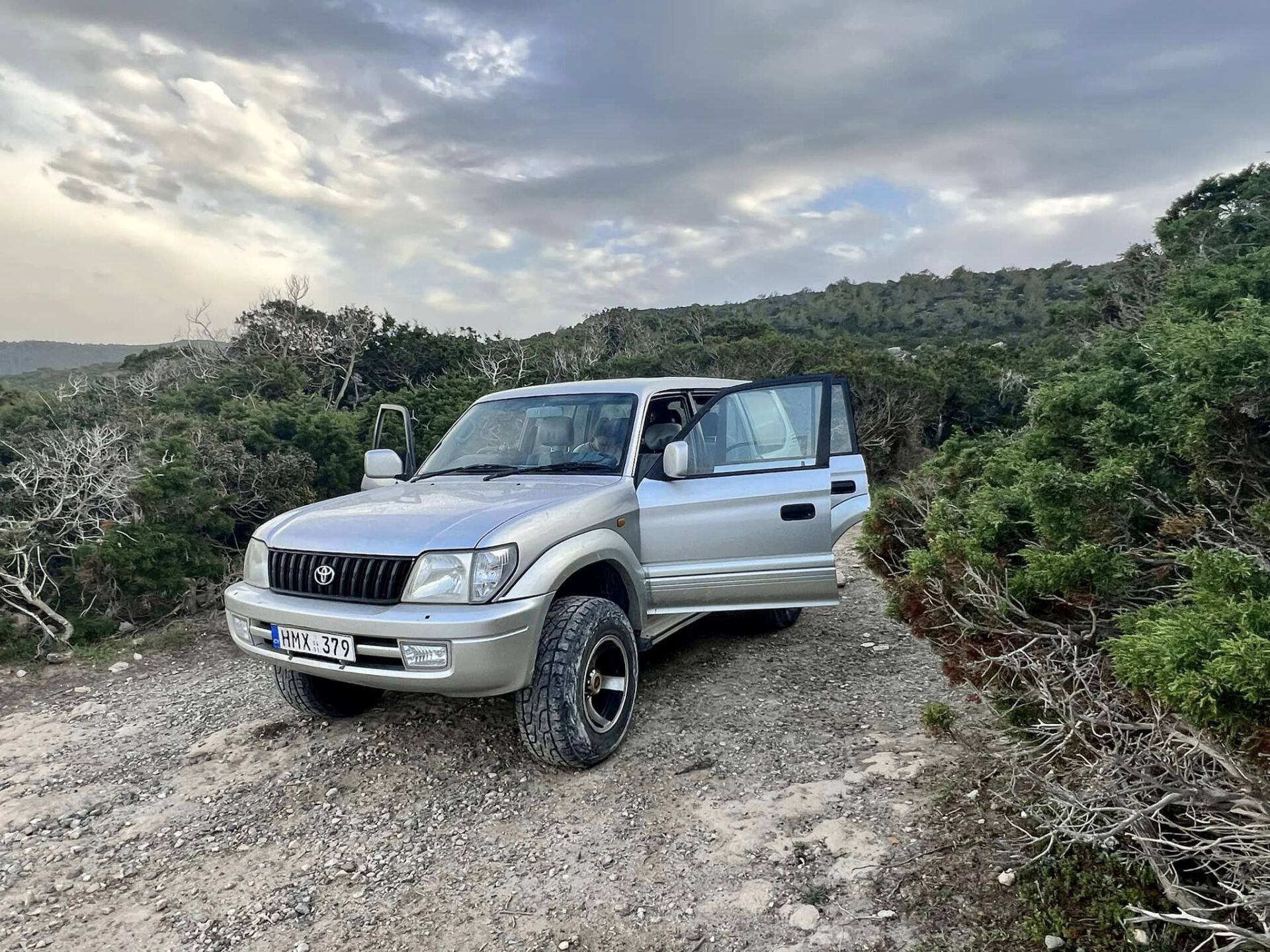 Środek lokomocji: jeden z najlepszych off roadowych samochodów Toyota Land Cruiser, specjalnie dostosowana do jazdy w terenie Akamas